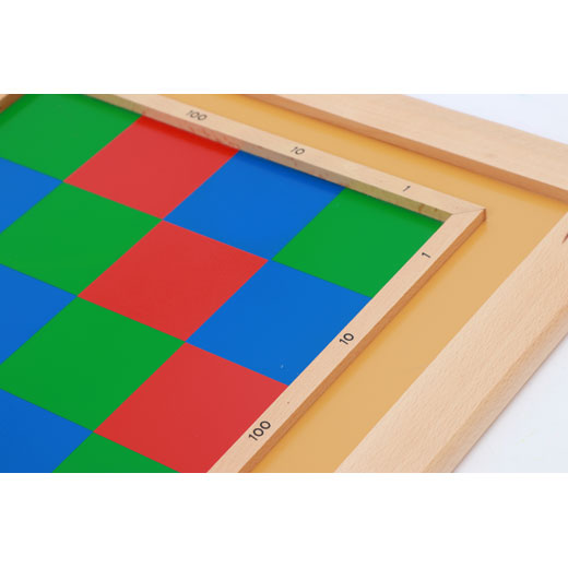 The Checker Board is used for short and long multiplication with the hierarchies in the decimal system up to 100,000,000.