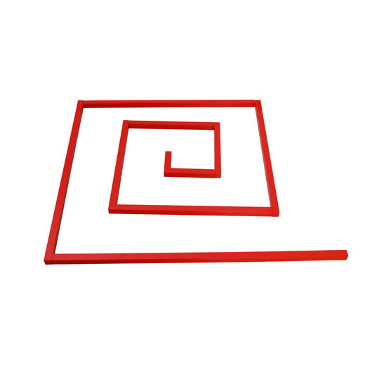 Ten solid long red wooden rods that are constant in height and width (2.5cm) while graduated in length from 10cm to 1 metre.