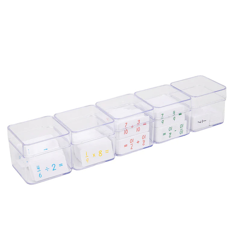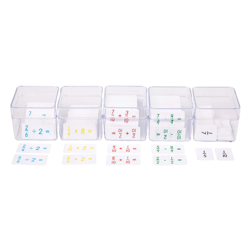 5 sets of color-coded combination (equations) slips, each for name, addition, subtraction, multiplication, and division.