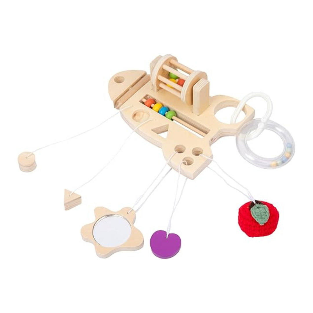 【Endless Entertainment】: Hang it in your baby's crib or take it along on your outings for on-the-go entertainment. The Montessori Baby Rocket Pull String Toy is the perfect travel companion to keep your little one engaged.