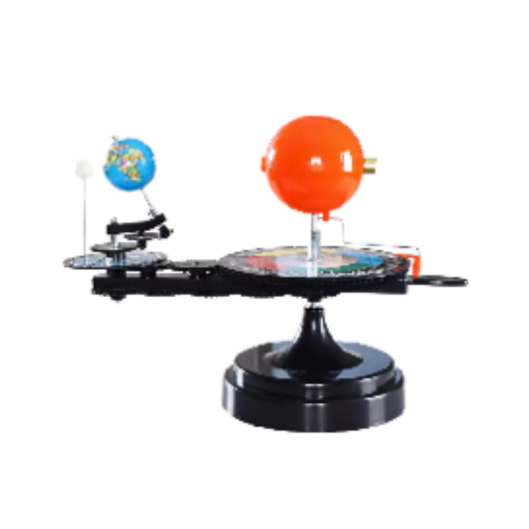 Seasonal plate that shows the names, order, and dates of the four seasons and the twenty-four solar terms in the traditional Chinese calendar. Multiple moving axis on this gear-driven model to demonstrate daylight, night, seasons, solar eclipse, lunar eclipse, and phases of the moon.